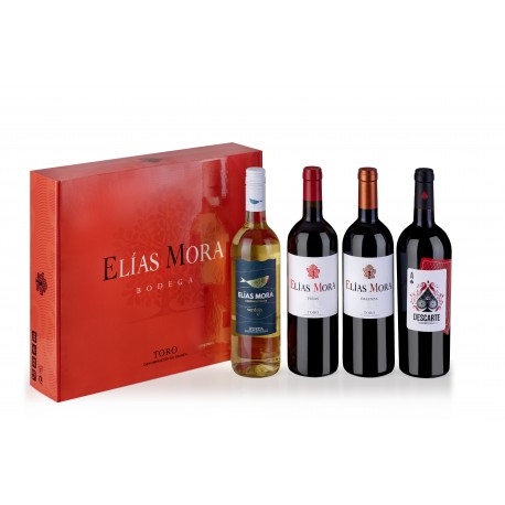 Una cuidada colección de 4 vinos para los amantes del vino: Elias Mora Contracorriente, Viñas Elias Mora, Elias Mora Crianza y Descarte.